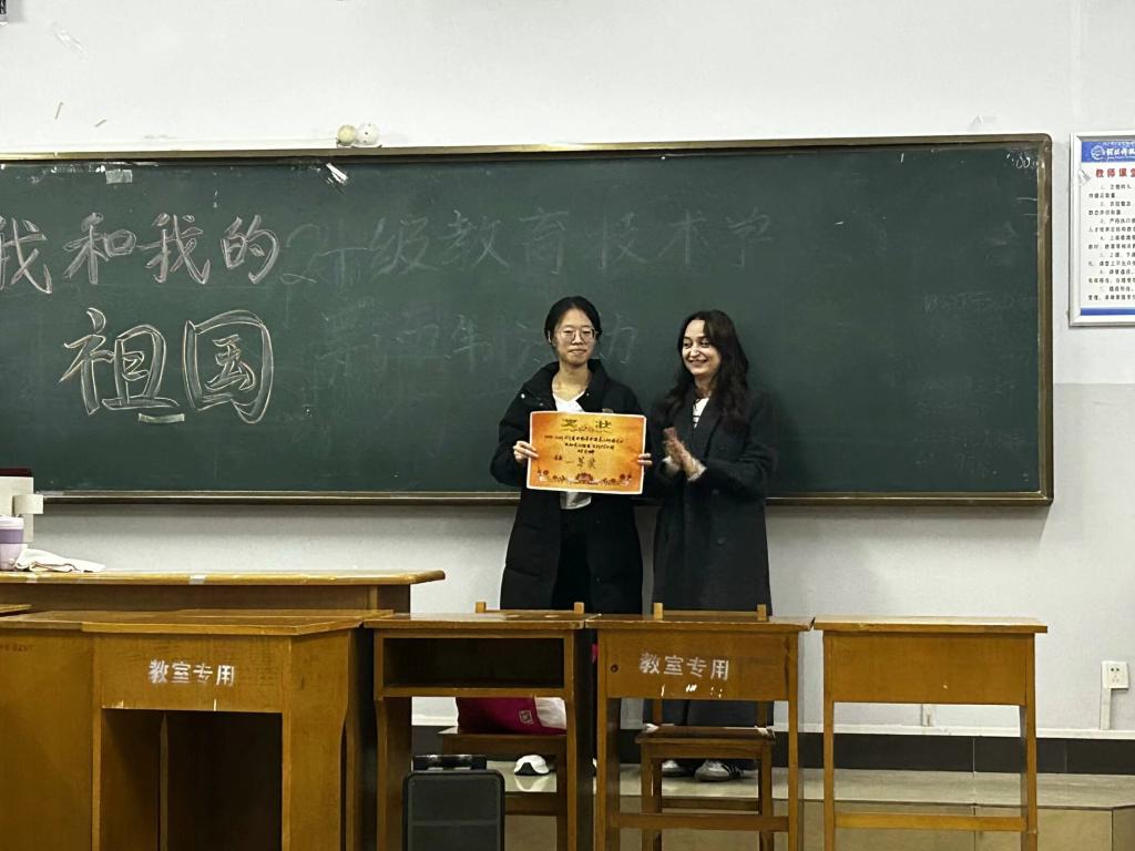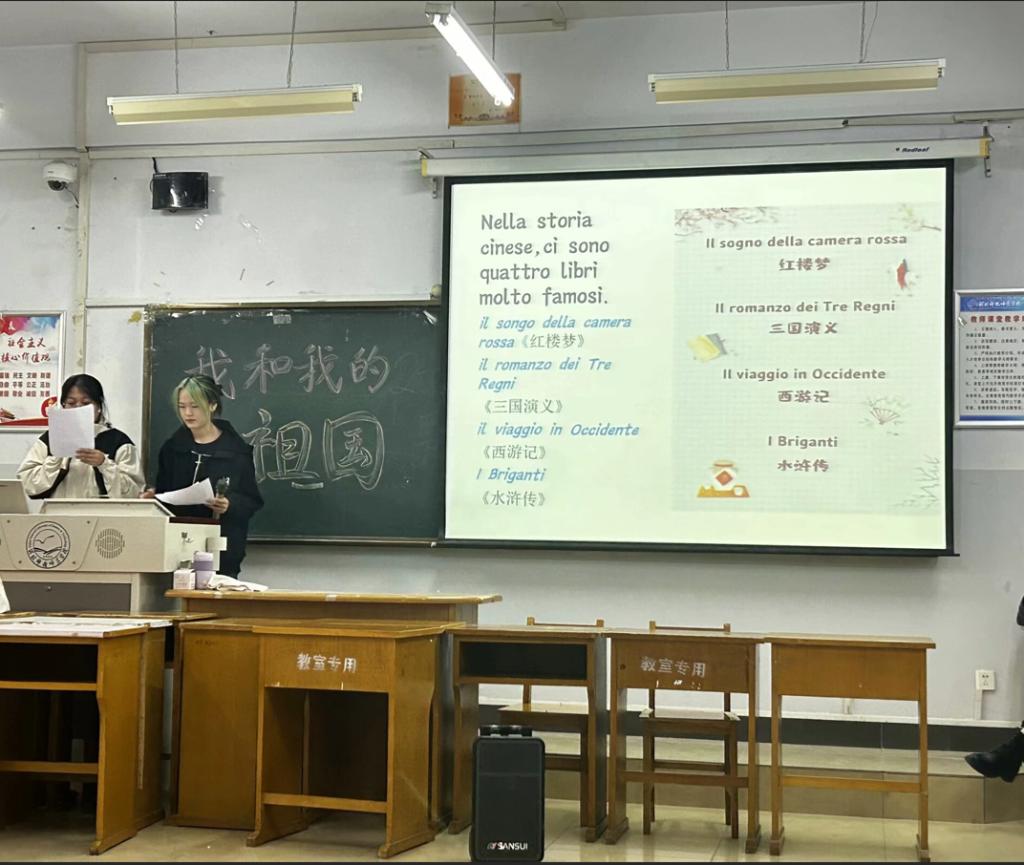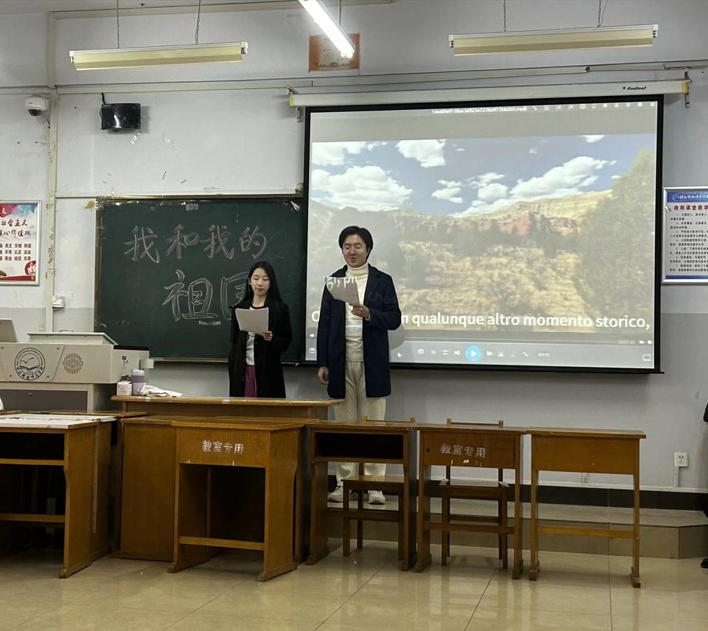 为了进一步加强爱国主义教育,将中国梦的核心牢记于心,同时将所学专业知识与热爱祖国联系在一起,并以多样的才艺迸发绚烂的色彩,beat365官方网站意大利语专业2301班全体同学于2024年10月22日在开发区综合楼406组织开展“我和我的祖国”系列才艺比拼。
