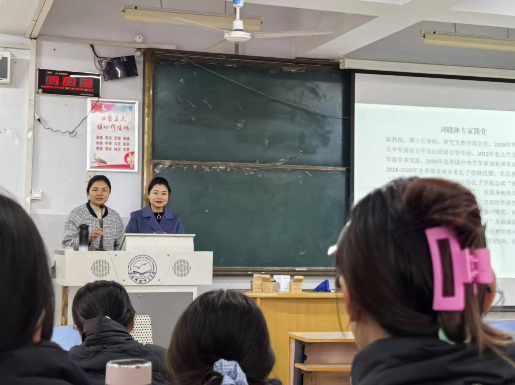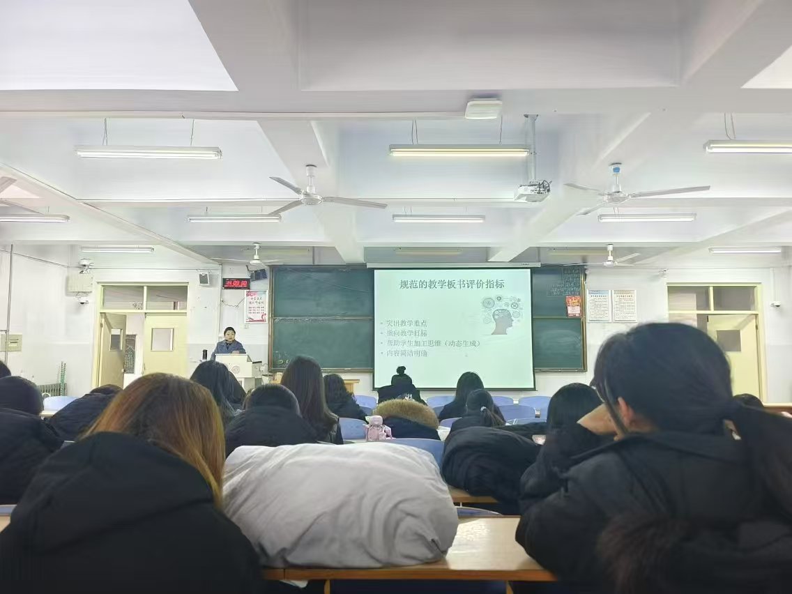 2024年10月24日,beat365官方网站研究生教学部主任刘晓冰副教授受邀为英语22级同学开展英语板书设计教学工作坊。刘老师介绍了英语板书设计的重要性、适用场合、评价指标等,展示了优秀的板书设计的构成与价值,并进行现场示范。然后让学生亲自体验黑板板书设计,刘老师随时进行指导和点评,学生参与热情高涨,效果良好。