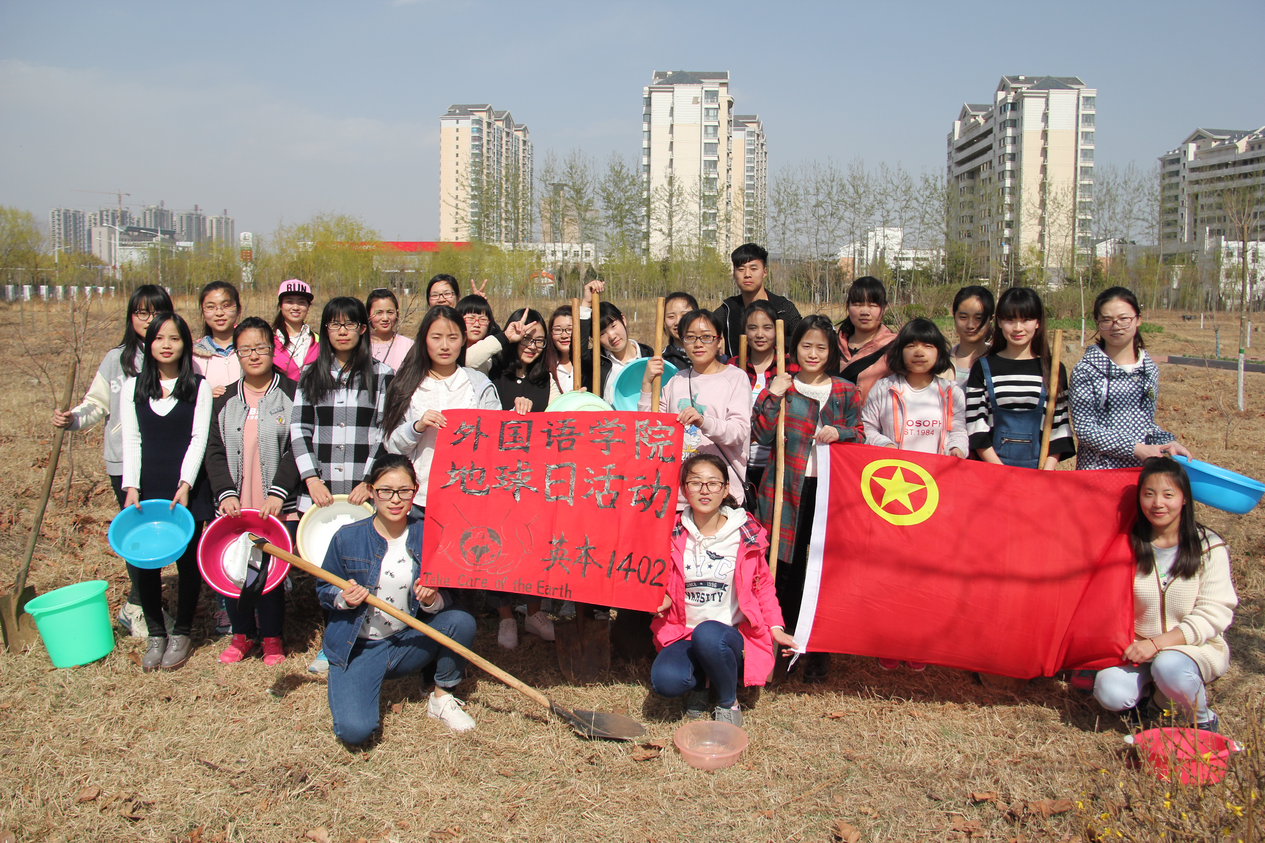 走进自然,亲近自然,爱护地球,在第47个世界地球日来临之际,beat365官方网站英本1402班于4月8日下午举行“地球日”主题团日活动,同学们在班团委的带领下到开发区校区内的山楂树林进行护理活动。同学们为山楂树松土、培土,清理了杂草,最后浇水。通过此次活动,希望同学们在今后的生活中能够保护大自然,爱护地球,为实现十三五“绿色方略”建设生态文明社会而努力。
