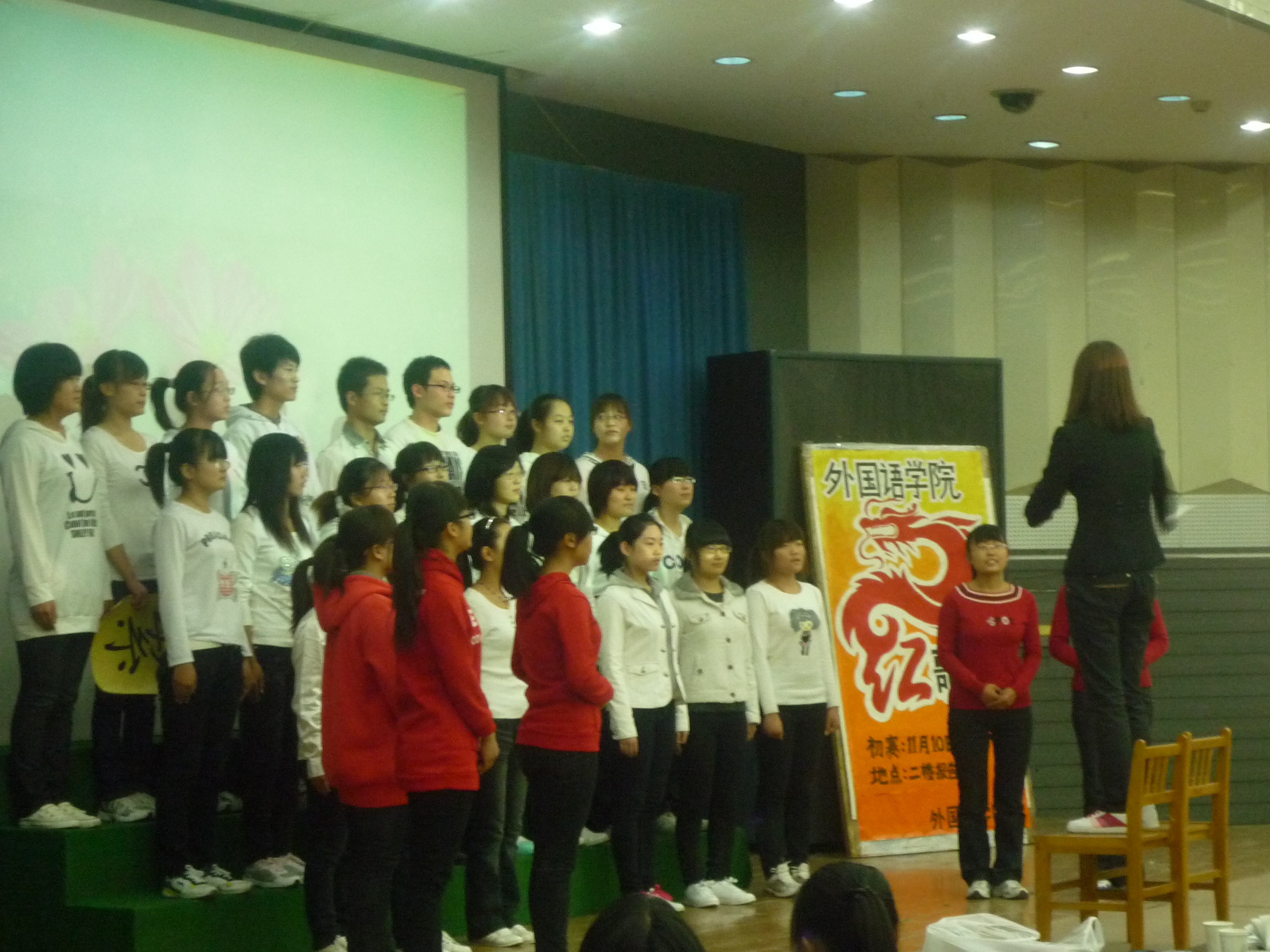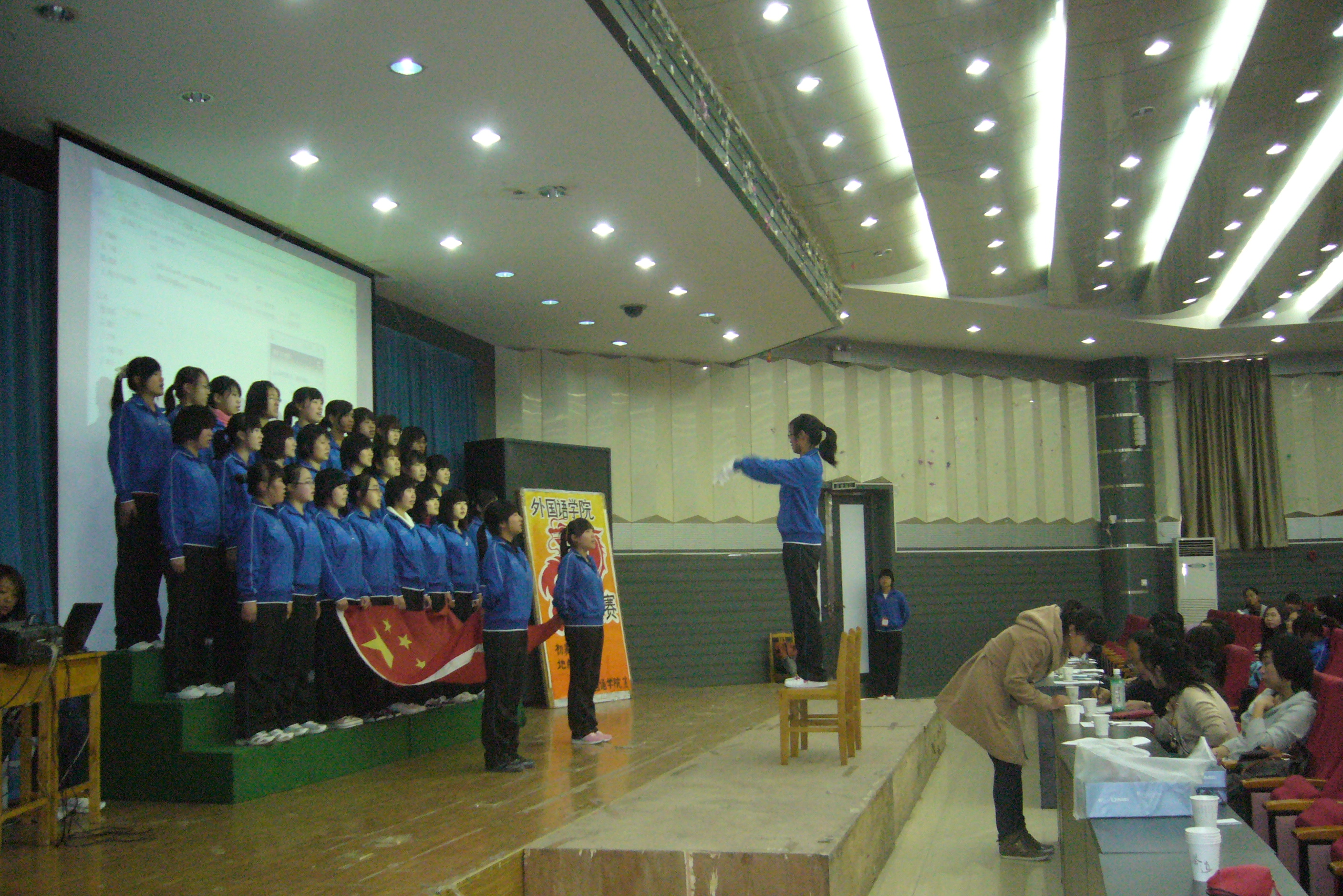 beat365官方网站beat365官方网站于2011年11月10日在综合楼二楼报告厅举办了“唱校歌,颂祖国”红色经典大合唱初赛。beat365官方网站全体10级、11级共23个班级参赛。学工办老师和各班辅导员担任了此次比赛的评委。